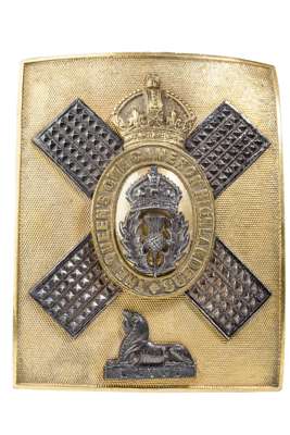 A Queen's Own Cameron Highlanders gilt brass and white metal cross belt plate