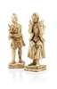of a Highland figure playing bagpipes in full highland dress and a Fisherwoman in traditional clothing carrying a basket of fish, each carved and painted and raised on a simple square base (2)