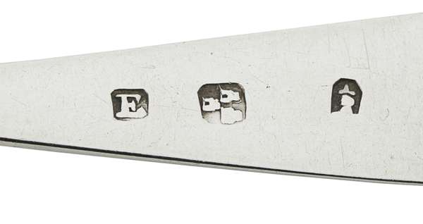 James Erskine, marked E, three towers, hand and dagger, of Old English pattern with engraved initials JR to terminal (12)