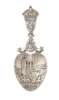 William J Fraser, marked WJF, Edinburgh 1928, of conventional form with lightly gilt heart-shaped bowl with embossed view of Balmoral castle with `BALMORAL` below, the thistle handle with lion rampant within crowned shield as finial