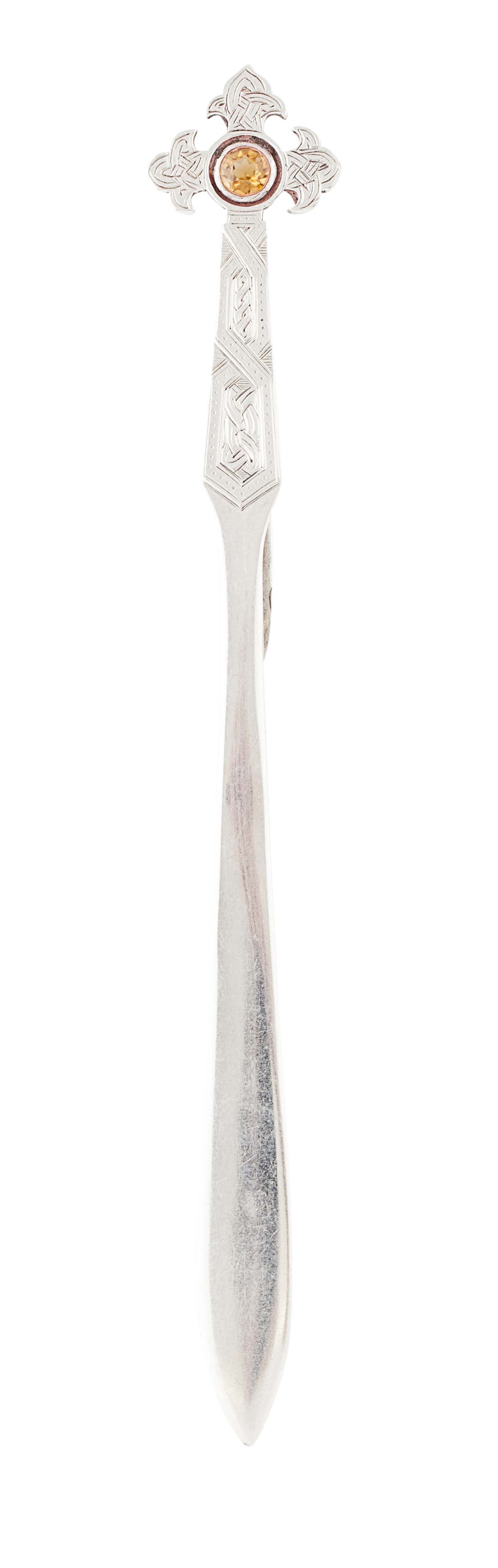 William James Fraser, marked W.J.F., Edinburgh 1928, the Celtic Cross finial with central citrine, with tapered 'sword' blade