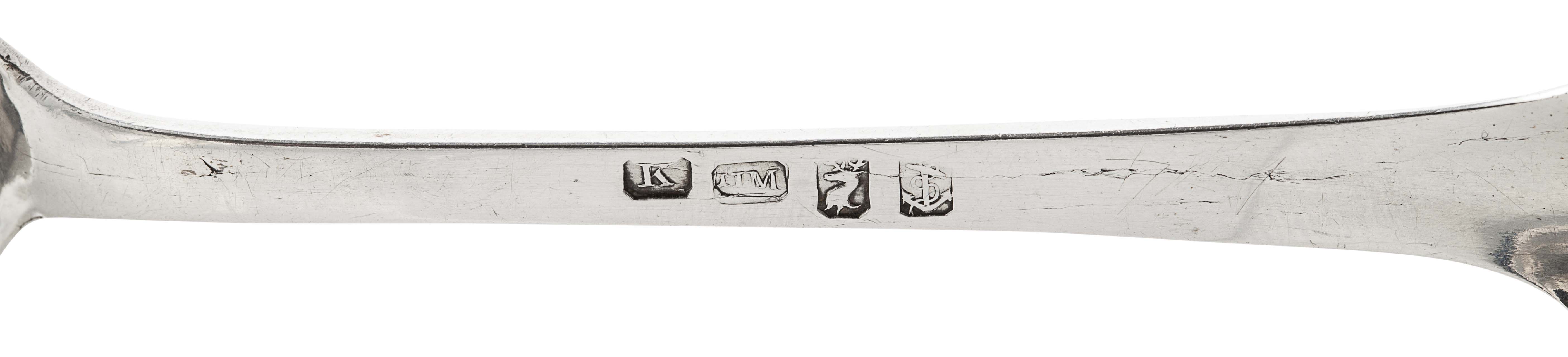 Henry Mouncie, marked K, HM, stag, anchor, of Oar pattern with script initial HLM to bow