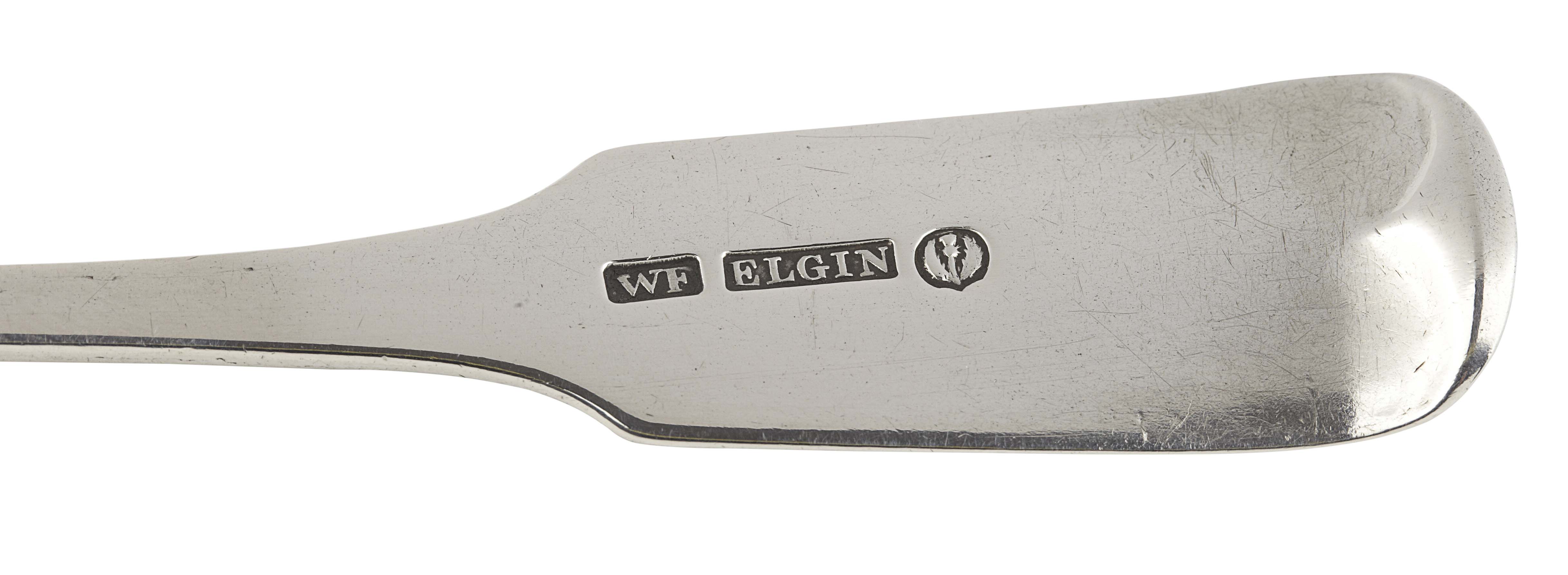 William Ferguson, marked WF, ELGIN, thistle, of Fiddle pattern with engraved initials to terminal