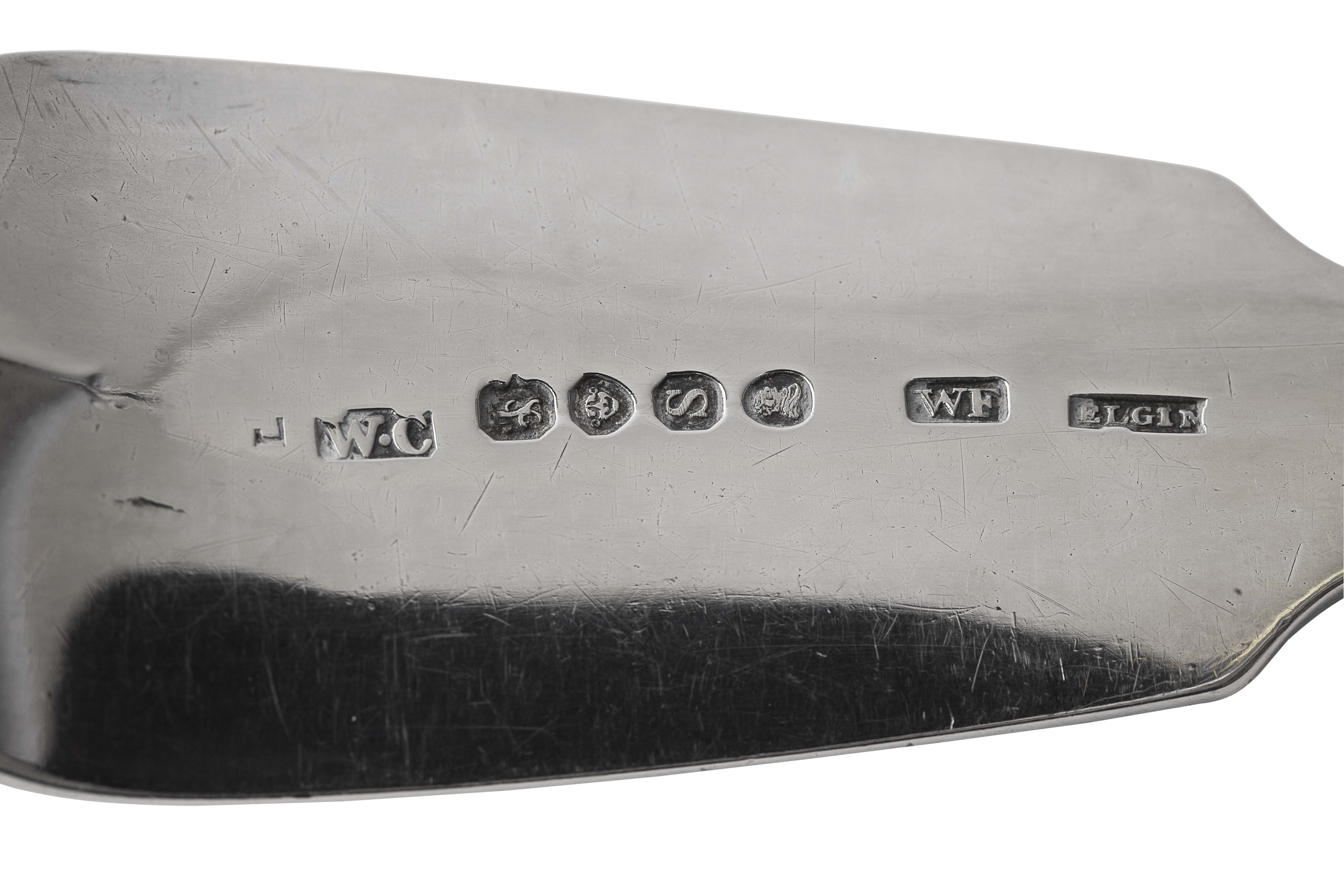 retailed by William Ferguson, marked W Chawner, London 1813, WF, ELGIN, of Fiddle pattern with gothic initial C to terminal