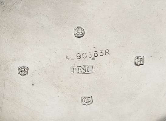 James McKay, Edinburgh 1838, of squat form with foliate and scrolling detail throughout, the raised curving rim with similar detail, leaf capped handle and spout, to four bracket feet