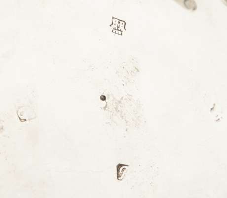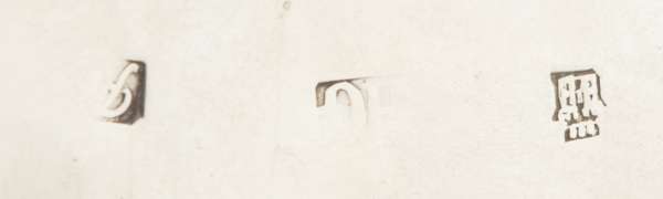James Ker, Edinburgh 1746, each of typical form with slight baluster body and everted scallop rim with chased trailing foliage and scrolling shells, raised on three scroll and hoof feet, the cream boat with acanthus capped S scroll handle (2)