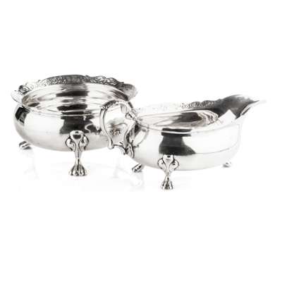 cream boat 17cm long, sugar bowl 12cm diameter combined weight 15.9oz