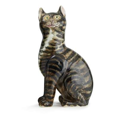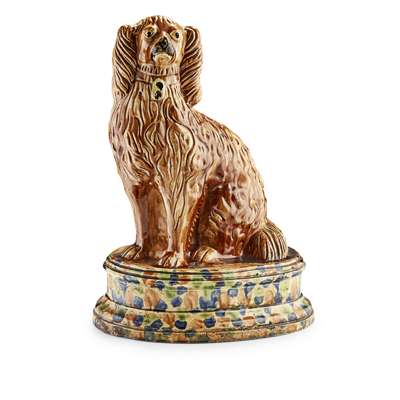 A LARGE SCOTTISH POTTERY FIGURE OF A SPANIEL