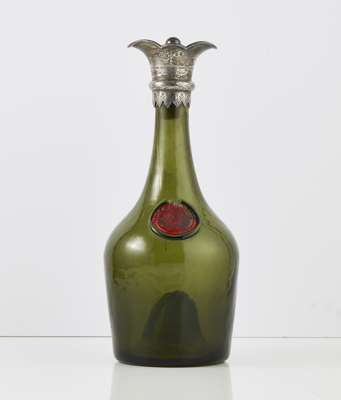 A VICTORIAN SILVER MOUNTED 18TH CENTURY WHISKY BOTTLE / DECANTER