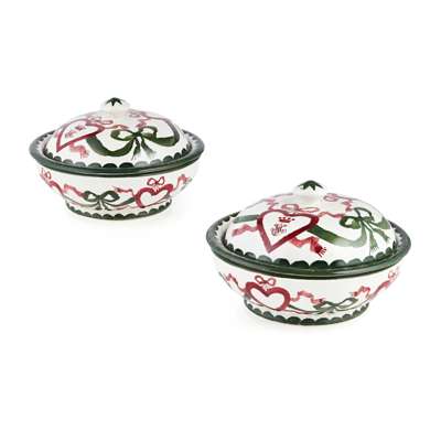 A PAIR OF WEMYSS WARE SOAP DISHES, LINERS AND COVERS