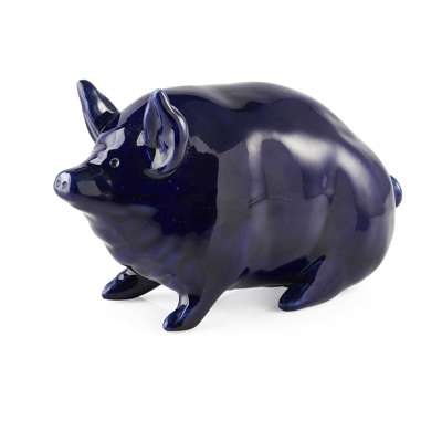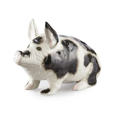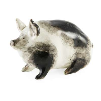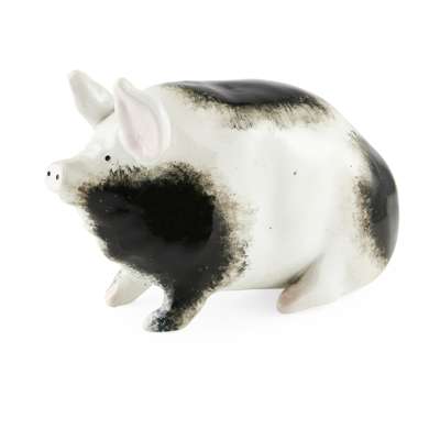 A SMALL WEMYSS WARE BLACK & WHITE PIG