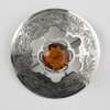 marked J.LYl, AYR, of annular form, engraved thistles within wriggle-work border with claw set orange paste to centre