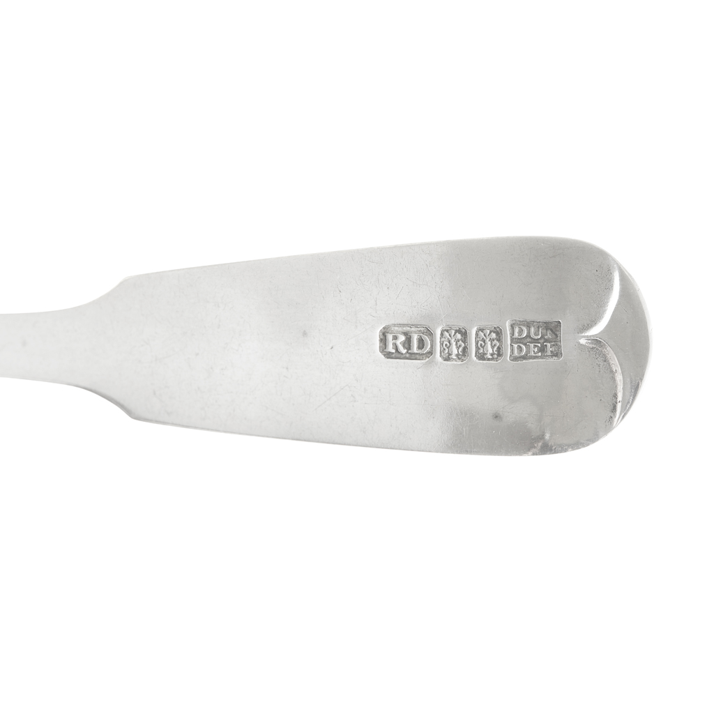 marked RD, pot of lilies twice, DUN/DEE, of Fiddle pattern, script initial M to terminal