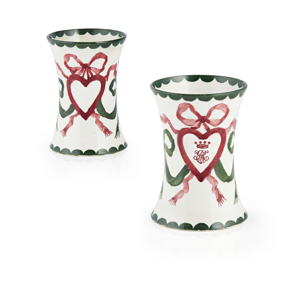 decorated with hearts and ribbons, and bearing cypher with initials EAW, impressed maker's mark WEMYSS WARE/ R.H.& S. (2)