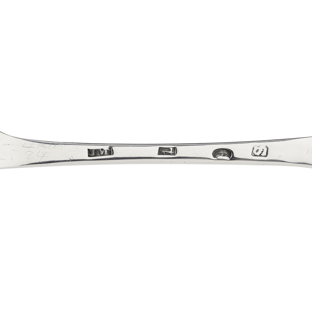 Although work by McEwan is not rare, examples with his unique lion passant / walking cat marks are highly unusual. The exact use of the this punch is un explained but it seems highly likely he was trying to replicate the style and punches used in official hallmarking in England; an attempt at a sterling standard lion passant mark.