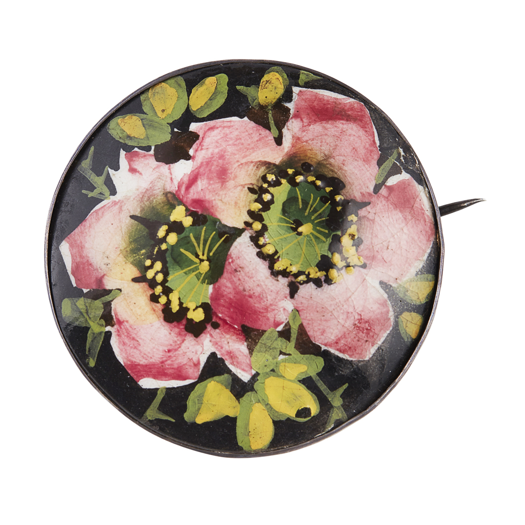 with metal mount and pin fastening, decorated by David Grinton and bearing painted and impressed marks WEMYSS
