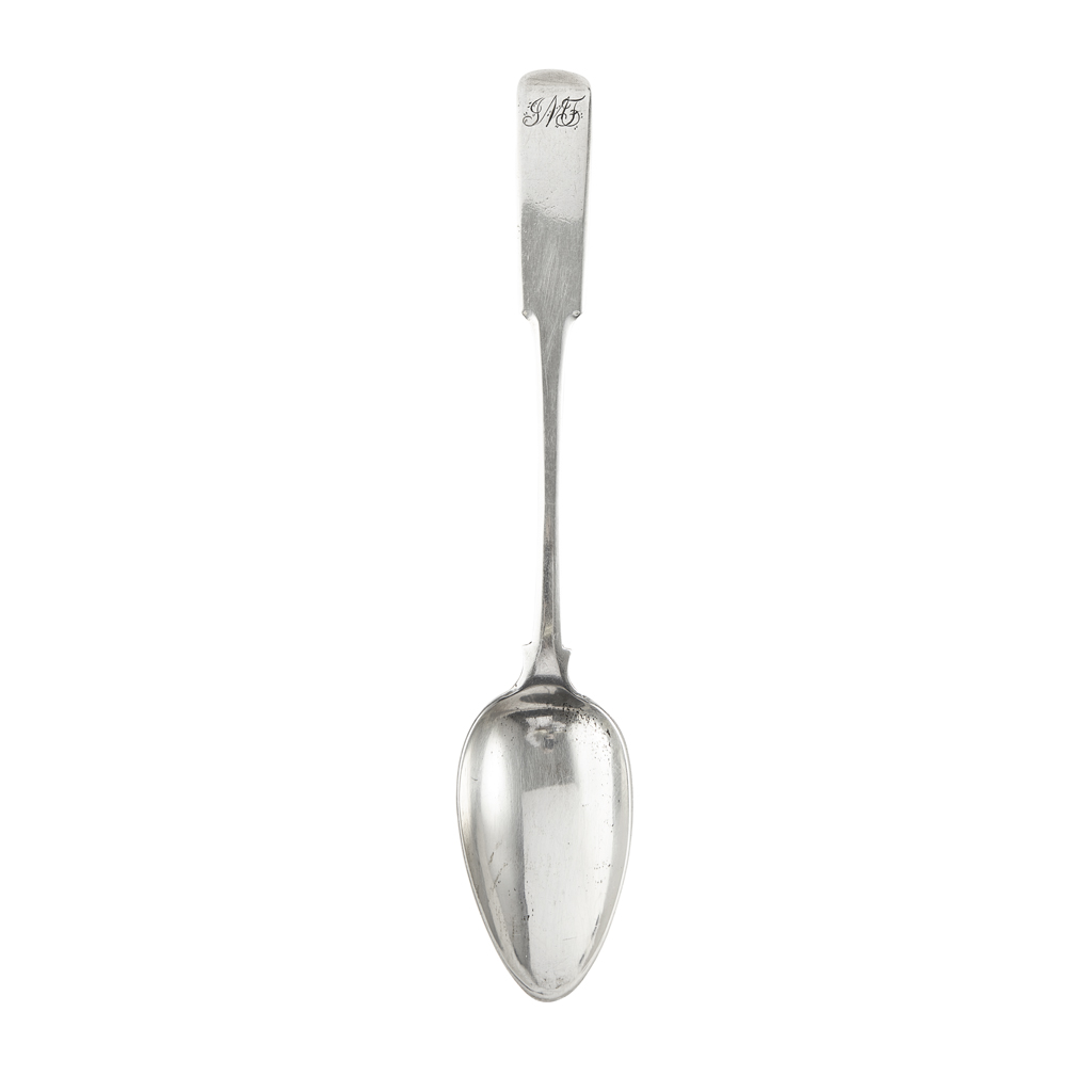 marked A.G, S, T, O, N, H, N, of Fiddle pattern with chamfered stem, the terminal engraved with conjoined script initials JMF