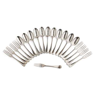 A SET OF ELEVEN GEORGE II TABLESPOONS