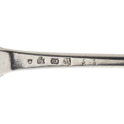 Assay Master, Edward Penman, of Hanoverian pattern with elongated rat tail to bowl, with script initial C to terminal and scratch weight 8:9 engraved above hallmarks