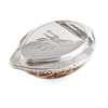 marked WR twice, the polished shell with scalloped mount and hinged flat cover, engraved with a plough and initials GP