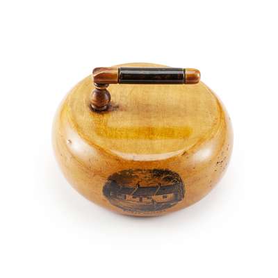 A MAUCHLINE WARE CURLING STONE PAPERWEIGHT