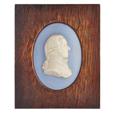 reserved on a pale blue jasperware ground, moulded inscription ADAM SMITH/ ON HIS 64TH YEAR/ 1787/ TASSIE, impressed mark verso WEDGWOOD/ ENGLAND