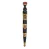 retailed by Wilson & Sharp Edinburgh, the carved black wood handle with brass studs, the pommel set with foil backed crystal, with double fullered blade with knotched back edge, the scabbard with gilt brass thistles and St Andrew mounts set with bi knife and fork, in original fitted japanned tin case
