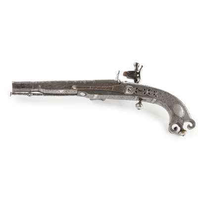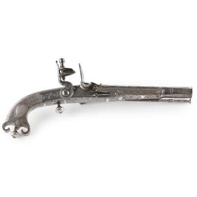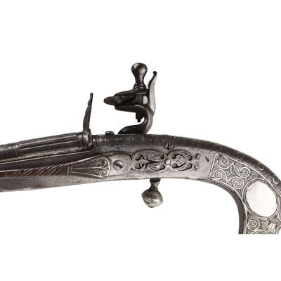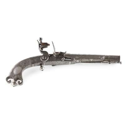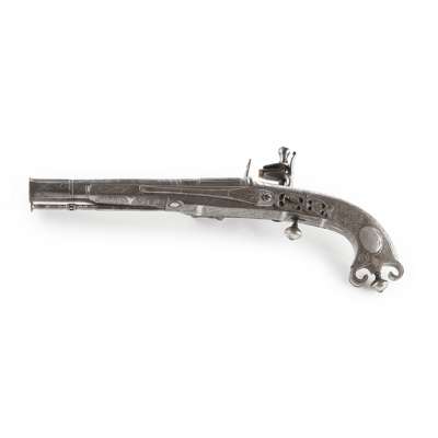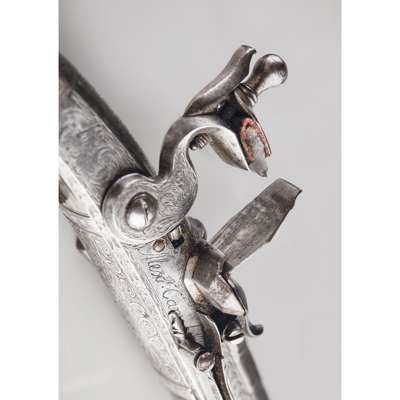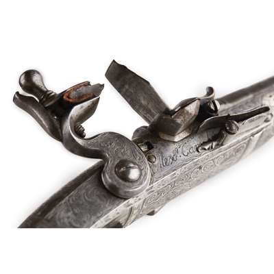 Alexander Campbell was one of a dynasty of three pistol makers based in Doune; the son of John Campbell and father to John Campbell II. His work is of a uniformly high standard and his expert skills are seen in the fine interlaced decoration and silver inlay which make his pistols instantly recognisable. It is considered that he and one other maker, John Christie of Stirling, were the highest exponents of these skills, and when the extra work and cost of the additional decorations are taken into consideration, these pistols could be seen as amongst the finest made within the period.