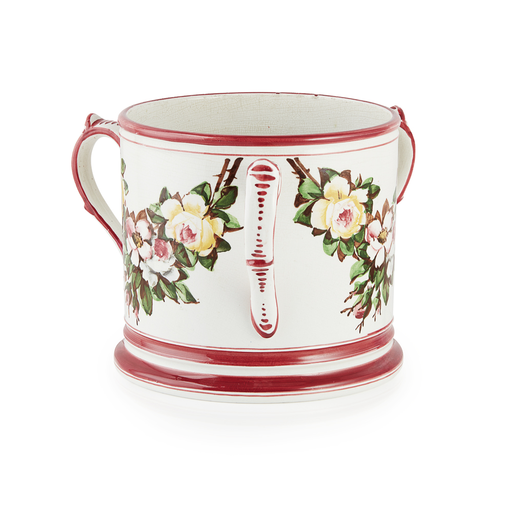 decorated with garlands of dog roses and white and yellow roses, impressed mark WEMYSS, restorations