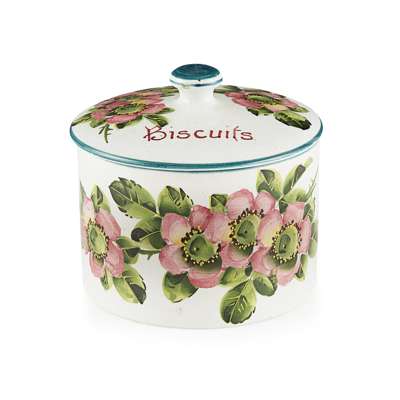 A WEMYSS WARE BISCUIT BARREL & COVER