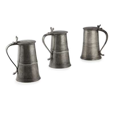 A GROUP OF THREE SCOTTISH PEWTER COMMUNION FLAGONS