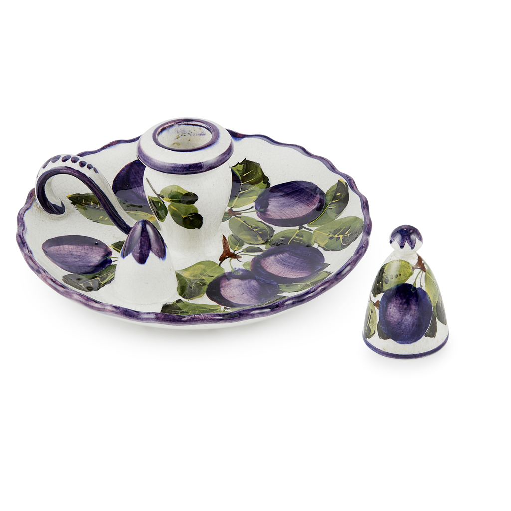 A WEMYSS WARE CHAMBER CANDLESTICK AND SNUFFER