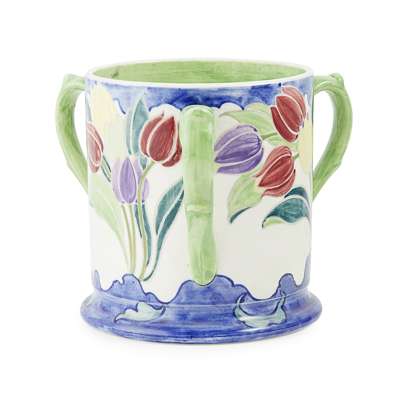 Note: 'Bough' pottery was set up in Edinburgh by Elizabeth Amour who had attended the Glasgow School of Art from 1908 to 1912. Amour bought blanks from various sources which were decorated by herself and other members of her family and then glazed. Most pieces are marked 'Bough' and initialled by the decorator. The present lot is decorated by Elizabeth Amour's brother, Richard. Bough pottery was produced until 1942.