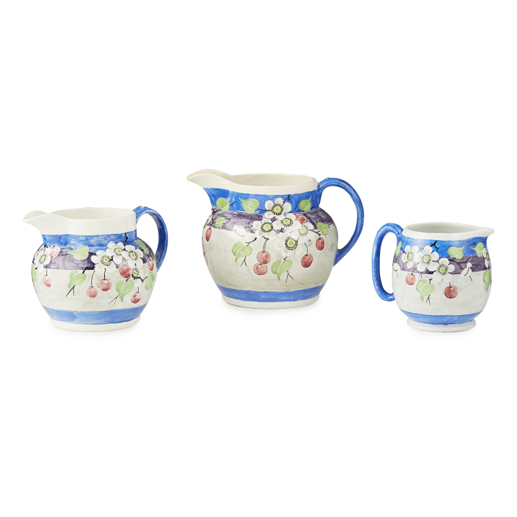 each painted with flowering cherry blossom and fruits, all with painted maker's marks MAK' MERRY, the largest dated 1924 (3)
