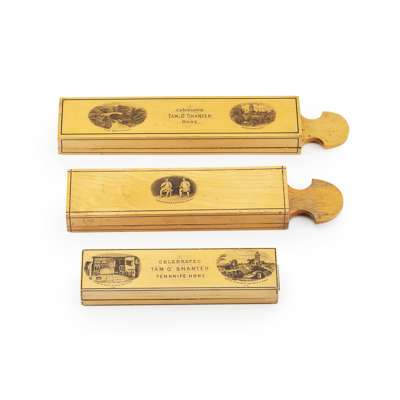 comprising three 'Tam O'Shanter' Knife and Razor sharpeners, 26.5cm and 21.5cm long; six miscellaneous Boxes; a Cribbage Board; a Book; and four Egg Cups (15)