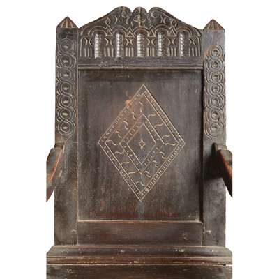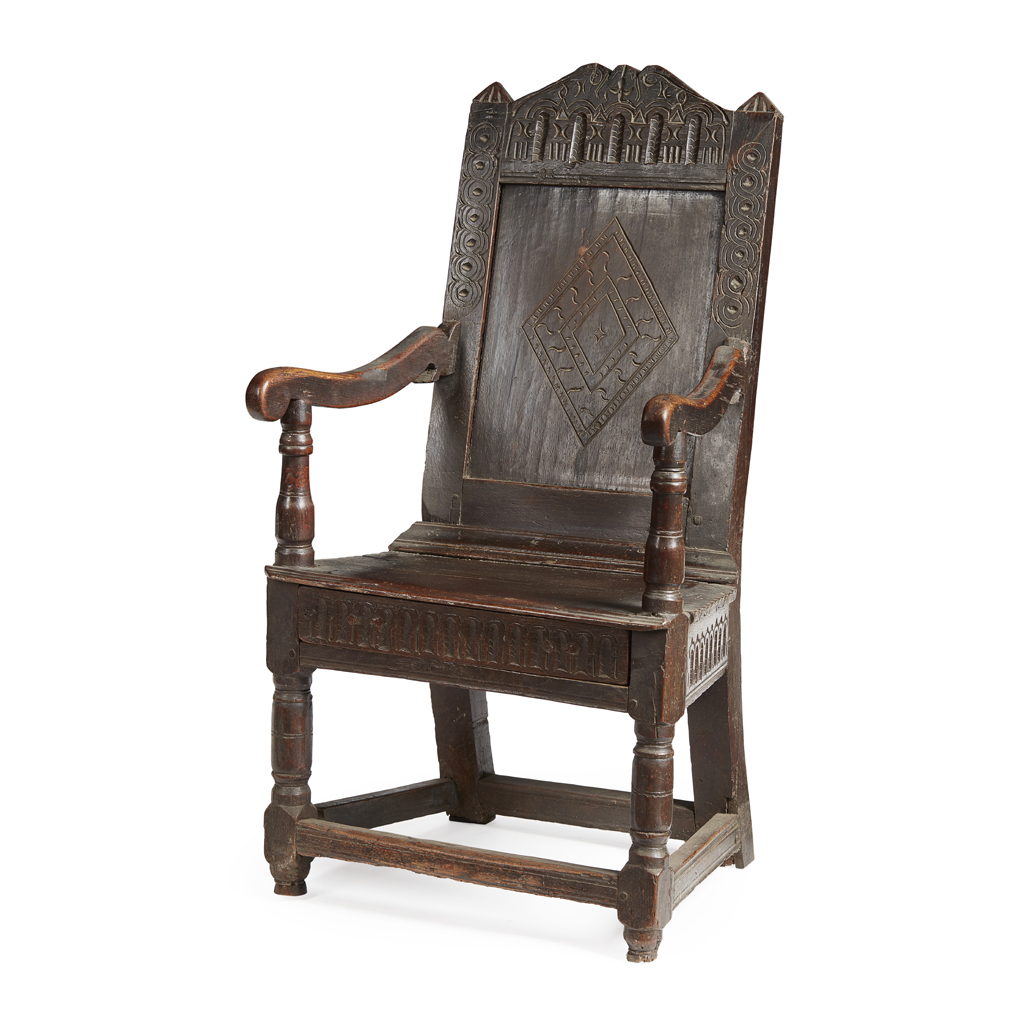 A SCOTTISH JOINED OAK WAINSCOT ARMCHAIR