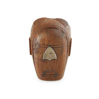 AN UNUSUAL CARVED WOODEN SNUFF BOX IN THE FORM OF A MONKEY HEAD Y