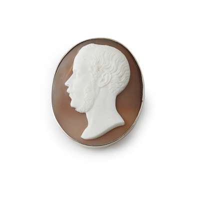 Note: Tommaso Saulini (1793-1864) was a well-regarded cameo carver in all materials from shell to hardstone. He carried out many commissions for Royalty and notable people of the 19th century. Through John Gibson (1790-1866), the English sculptor living in Rome, Saulini received frequent commissions for cameos from Queen Victoria in the years 1854-60. Examples can be found in The Royal Collection.
