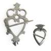 Marked CA, of simple heart shaped form with flared and scalloped engraved crown surmount, with integral swing pin and engraved IM to reverse; together with an 18th century Inverness style Luckenbooth indistinctly marked ER, and engraved with initials IMK (2)