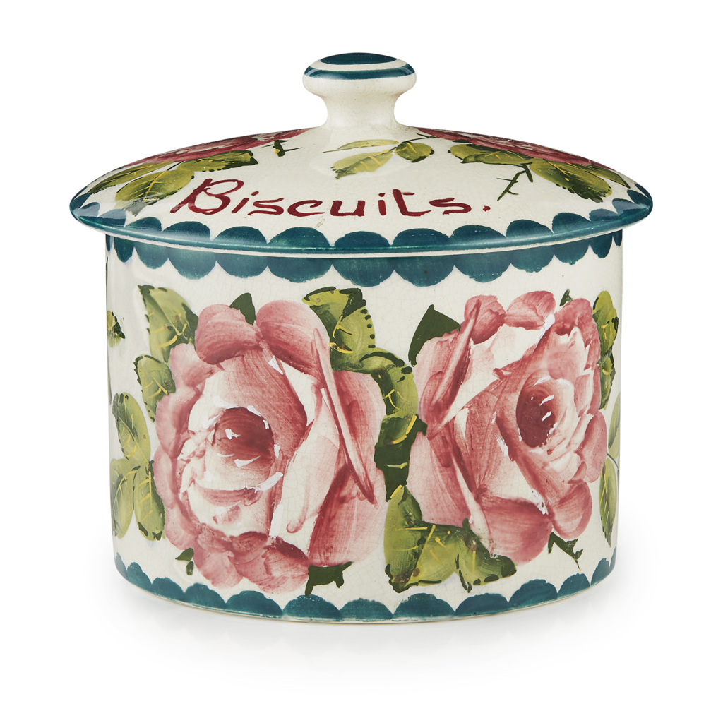 A WEMYSS WARE BISCUIT BARREL & COVER