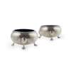 marked M&C, Glasgow town mark, O, of cauldron form raised on three hoof feet with blue glass liners (2)