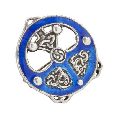 marked AR (incuse), IONA, the annular brooch with deep blue enamel fields surrounding Celtic knotwork panels and plain bosses