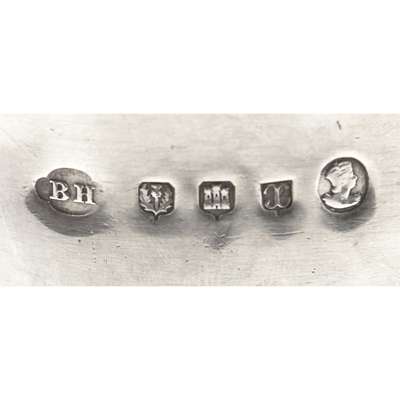 Note: Bernard Harrington registered his punch at the Edinburgh Assay Office between 1948 and 1975 when he was an active silversmith, designer and University lecturer. His legacy is not confined to his output of fine silver, which encompasses various civic items, including the Maces for the City of Dundee in 1954 and that of the Deacon Convener of the Nine Trades of Dundee in 1953. He will also be remembered for his influence on a much wider sphere of Scottish silversmiths and jewellers as the head of Silversmithing and Jewellery Department at Duncan of Jordanstone College of Art and Design in Dundee. He held this position from 1943 until 1974 influencing a generation of students.