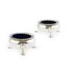 of cauldron form, with scalloped rim, raised on three hoofed feet with glass liners