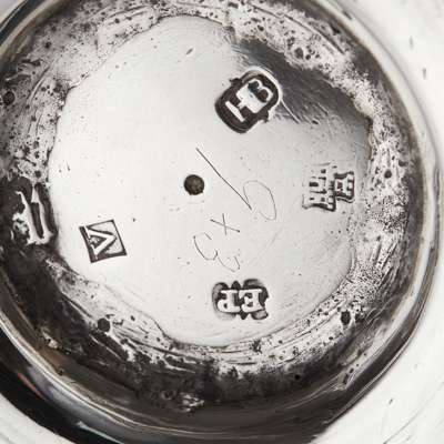 Examples of this pattern are obviously meant to match with the fine bullet teapots of the period and when looked at closely the scale of the bowl matches, almost identically, the size of the teapots. This, combined with the use of the same short stems and domed feet, would appear to suggest these are the beginning of the matching tea service. This said, at this early period it would only have been very high status clients who would have been able to afford a full tea service in silver, again pointing to the rarity of some of the constituent parts which would likely have been supplied in porcelain or ceramics.