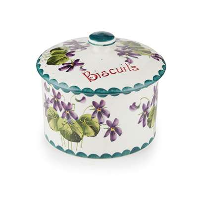 A SMALL WEMYSS WARE BISCUIT BARREL AND COVER