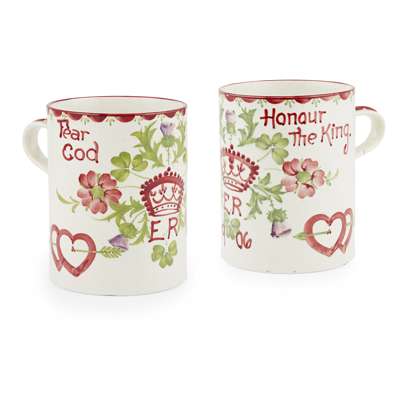TWO WEMYSS WARE BISCUIT BARRELS AND COVERS