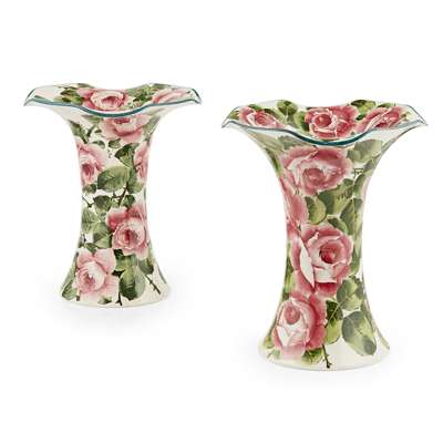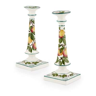 A PAIR OF WEMYSS WARE TALL CANDLESTICKS