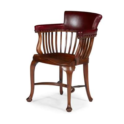 A SCOTTISH OAK FRAMED DESK CHAIR BY FRANCIS SMITH, GLASGOW