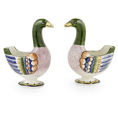 TWO LARGE WEMYSS WARE GEESE FLOWER HOLDERS